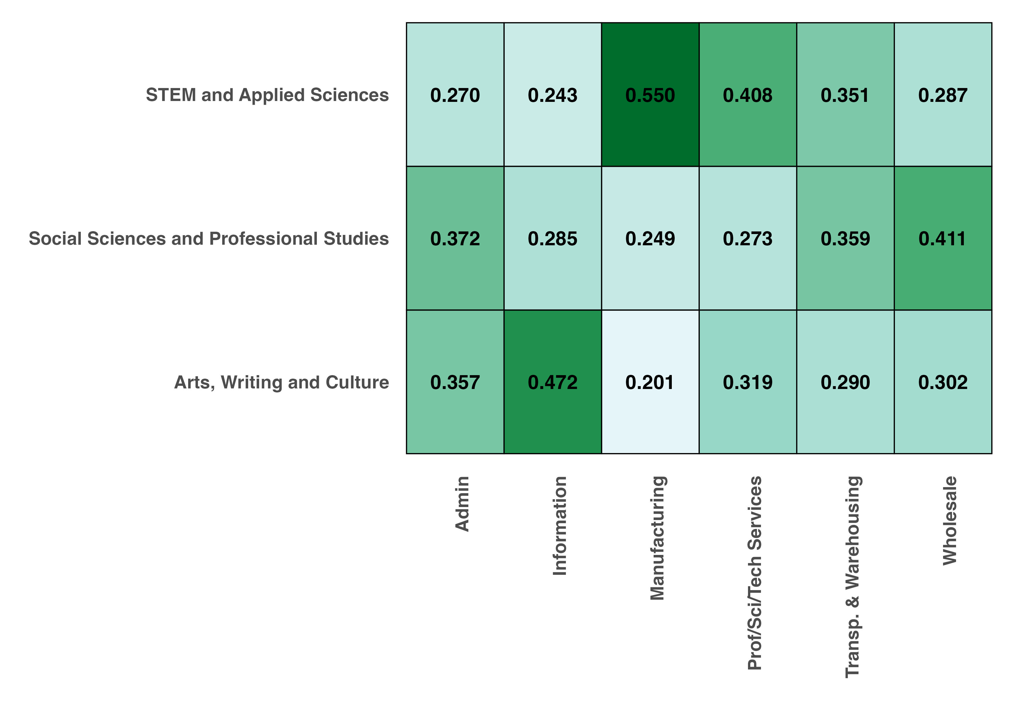 Field to Industry Mapping: Shares reflect the weighted distribution of degree fields among employed individuals within each industry